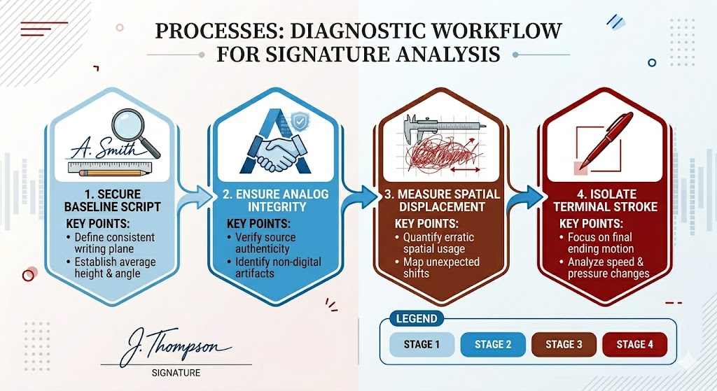 To master a clinical signature analysis, you must understand a fundamental rule: the signature is never analyzed in a vacuum. It must always be compared against the writer’s standard handwriting.